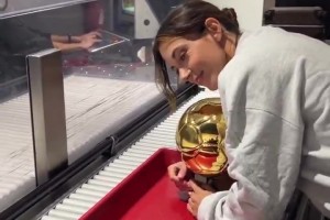 这傲娇的小表情!邦马蒂带着金球奖杯过安检 2025-09-24 16:15